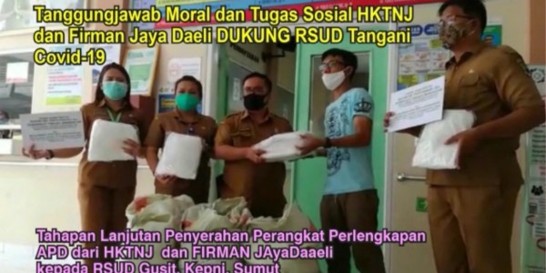 Telusur.co.id - Firman Jaya Daeli menyerahkan sumbangan partisipasi dalam bentuk perlengkapan Alat Pelindung Diri (APD) kepada