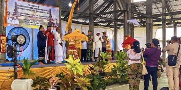 Telusur.co.id - Slogan melalui Dharma Agama dan Dharma Negara, mensukseskan pesta demokrasi tahun 2024. Ribuan umat Hindu