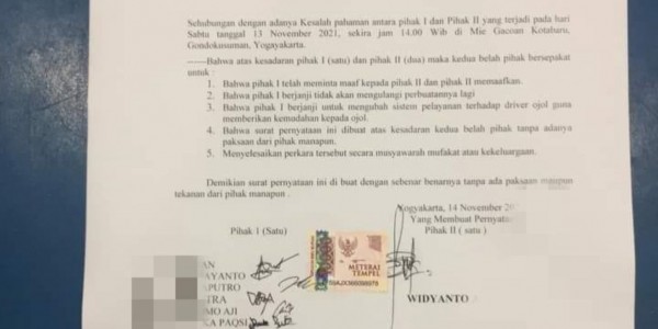 Telusur.co.id - Kericuhan antara driver ojol dan karyawan Mie Gacoan Cabang Kotabaru Yogyakarta telah bersepakat untuk damai